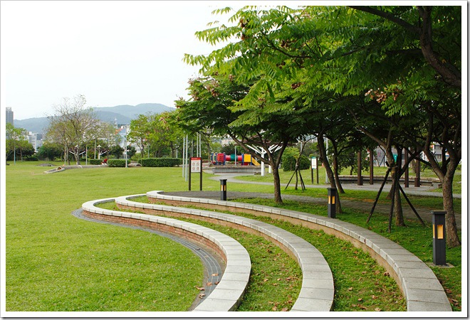 「內湖運動公園」休息區的設置,線條相當美觀。