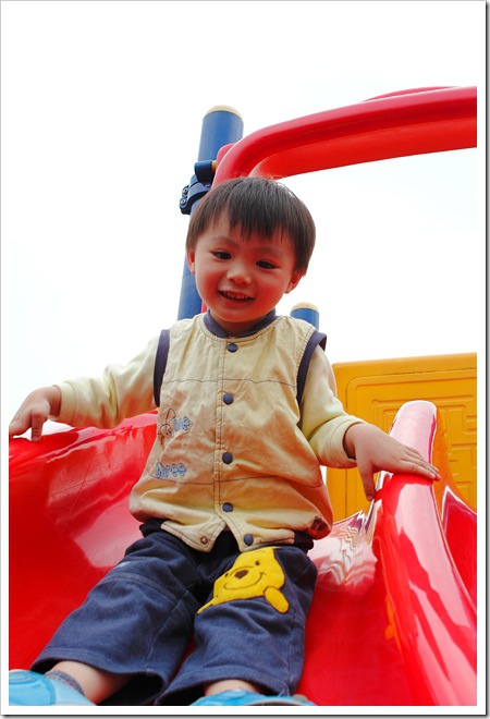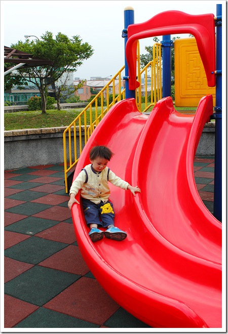 上面還有個溜滑梯,等到水池注了水之後,溜下來想必非常消暑。