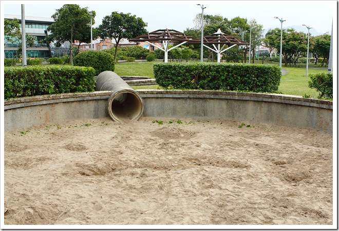 大沙坑由多條水泥管連接,要進到沙坑中必須由水泥管進入。