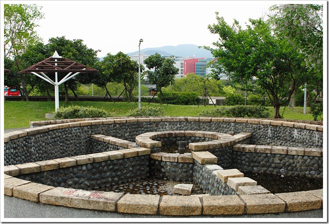 「兒童遊戲場」的另一側有座圓形的水池造景。