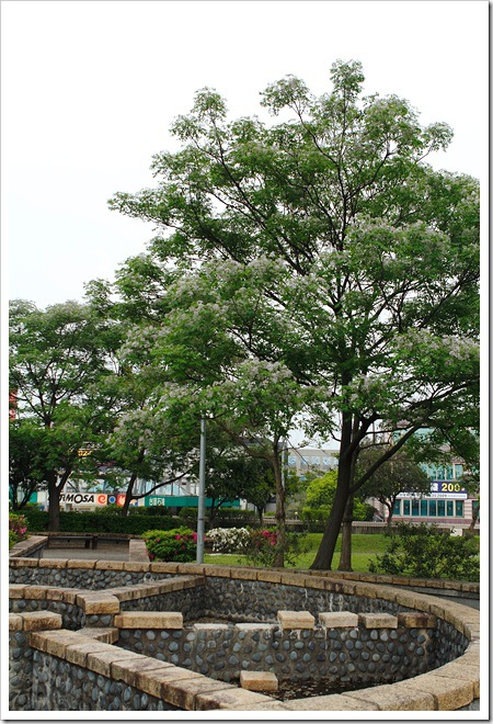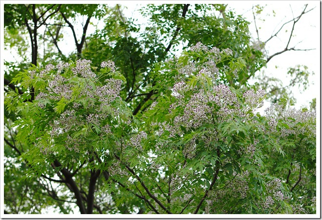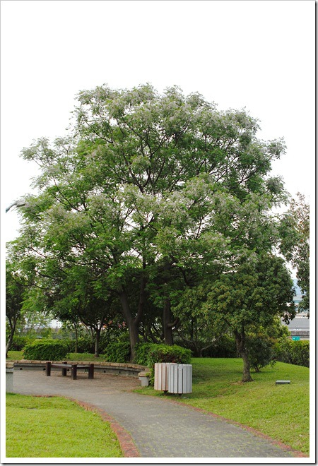 公園內草木扶疏,種植了許多株苦楝樹,目前正是花開時節,相當美麗。