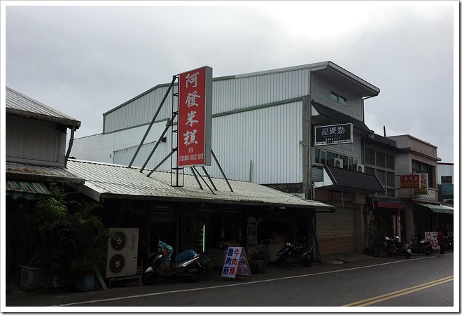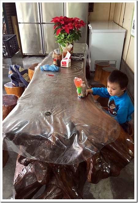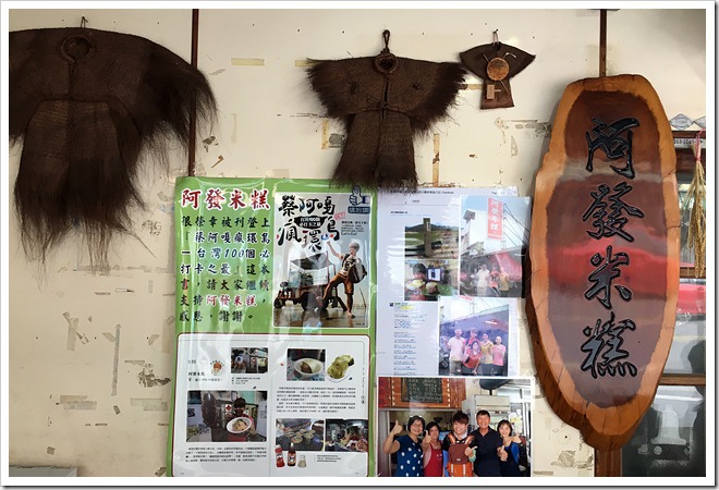 「阿發米糕」室外有張原木桌椅,也是用餐區。