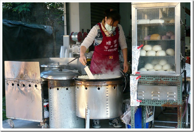 店家視銷售狀況每隔15~20分鐘煎好一籠,出鍋前已有許多客人在一旁拿著夾子等待著,準備享受熱騰騰的煎包呢。